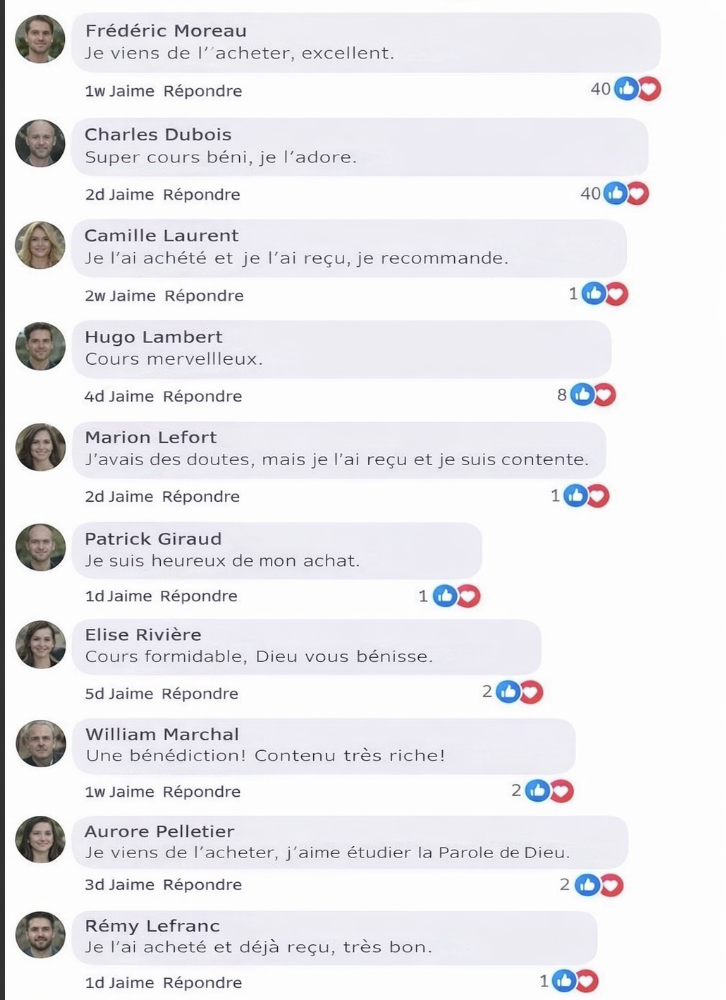 Si, pour une raison quelconque, vous estimez que le cours de théologie ne vous convient pas, il vous suffit de demander un remboursement et nous vous rembourserons immédiatement la totalité de votre investissement.